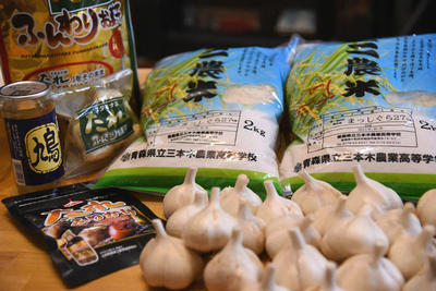 三農で作られたお米、ジャガイモ、ダイコン、玉ねぎ、ニンニクを販売、